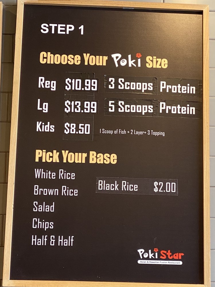 3 scoops of protein. Build your own regular poke bowl by choosing your preference of base, layers, 3 scoops of protein, sauces, and toppings. Items with additional charges are indicated.