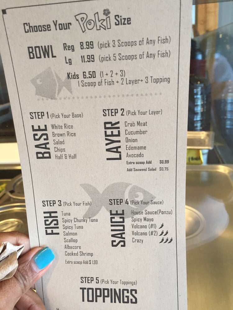 5 scoops of protein build your own large poke bowl by choosing your preference of base, layers, 5 scoops of protein, sauces, and toppings. Items with additional charges are indicated.